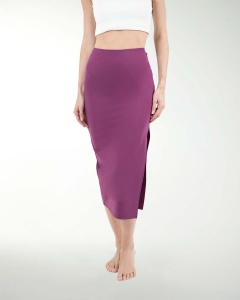 FALDA CASUAL DE LA LINEA ANTRO, ESTILO ENTALLADO CON ABERTURA LATERAL Y DETALLES DE DRAPEADO.
