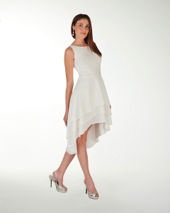 VESTIDO CC BLANCO CREPE FALDA A DESNIVEL
