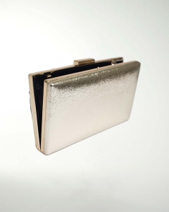 BOLSO DE MANO, TIPO CARTERA CON BROCHE EN TONOS METALICOS Y CORREA TIPO CADENA