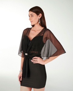 CHALINA TRANSPARENTE ESTILO CAPA Y CON AMARRE CON BROCHE POR EL FRENTE, EL COMPLEMENTO PERFECTO.
