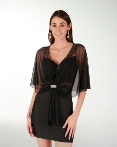 CHALINA TRANSPARENTE ESTILO CAPA Y CON AMARRE CON BROCHE POR EL FRENTE, EL COMPLEMENTO PERFECTO.