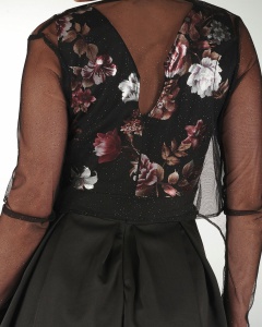 CHALINA CONFECCIONADA EN TELA TRANSPARENTE CON DESTELLOS DE BRILLO Y DE MANGAS LARGAS.