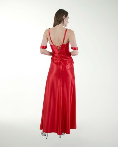 VESTIDO COCKTAIL LARGO, ENTALLADO DE FALDA DRAPEADA, TALLE EN STRAPLESS Y ESCOTE TIPO CORAZON.