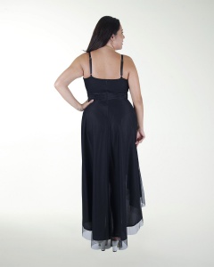 VESTIDO COCKTAIL LARGO, FALDA PLISADA EN DESNIVEL, TALLE CON DRAPEADO Y DE ESCOTE ESTILO CORAZON.