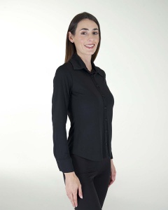 BLUSA CASUAL, CONFECCIONADA EN TELA LISA, CUELLO SPORT DE MANGAS LARGAS Y CIERRE CON BOTONES.