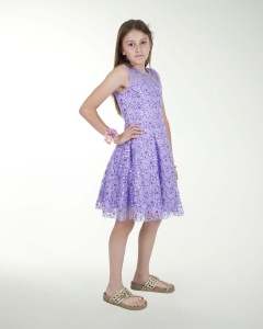 VESTIDO DE NIÃA, ESTILO FANTASIA, DE FALDA SEMICIRCULAR Y DE CUELLO REDONDO CON TRANSPARENCIA.