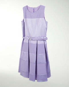 VESTIDO DE NIÃA, EN TELA SATINADA DE FALDA CON TABLONES, DE CUELLO REDONDO Y CINTURON.