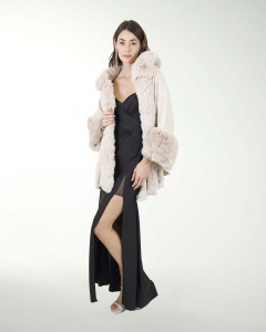 ESTOLA LARGA ESTILO ABRIGO, CON PELO SINTETICO EN MANGAS, CUELLO Y EN ABERTURA.
