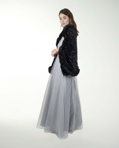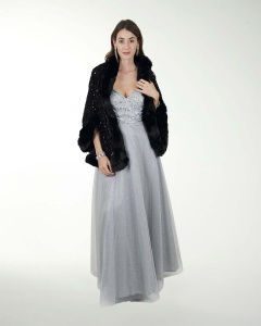 ESTOLA ELEGANTE ESTILO CAPA EN ENTEJUELA CON DETALLES DE PELUCHE, EL COMPLEMENTO IDEAL PARA TU OUTFIT.