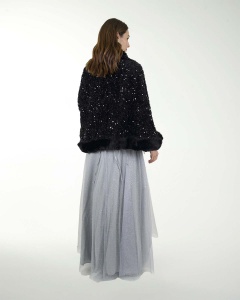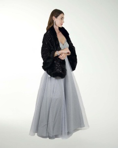 ESTOLA ELEGANTE ESTILO CAPA EN ENTEJUELA CON DETALLES DE PELUCHE, EL COMPLEMENTO IDEAL PARA TU OUTFIT.