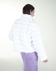 CHAMARRA CORTA DE PELO SINTETICO, DE CUELLO ALTO, MANGAS LARGAS Y CIERRE FRONTAL.