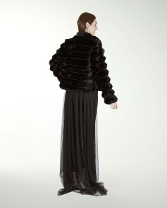 CHAMARRA CORTA DE PELO SINTETICO, DE CUELLO ALTO, MANGAS LARGAS Y CIERRE FRONTAL.