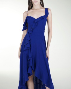 VESTIDO CASUAL LARGO, ESTILO ENVOLVENTE CON ESCAROLAS DE CORTE ASIMETRICO, ESCOTE EN V Y TIRANTES.