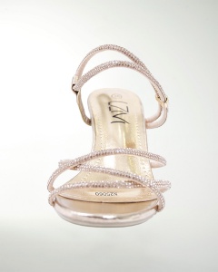 ZAPATILLA ESTILO SANDALIA, CON TIRAS EN PEDRERIA Y TACON BAJO CUADRADO.