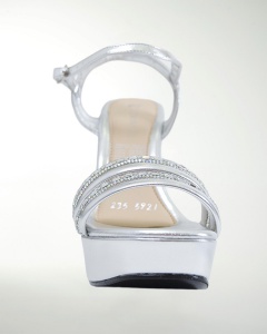 ZAPATILLA ESTILO SANDALIA, EN PLATAFORMA ANCHA, TIRAS EN PEDRERIA, TACON CUADRADO ALTO Y CON HEBILLA.